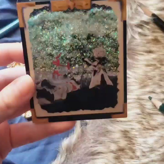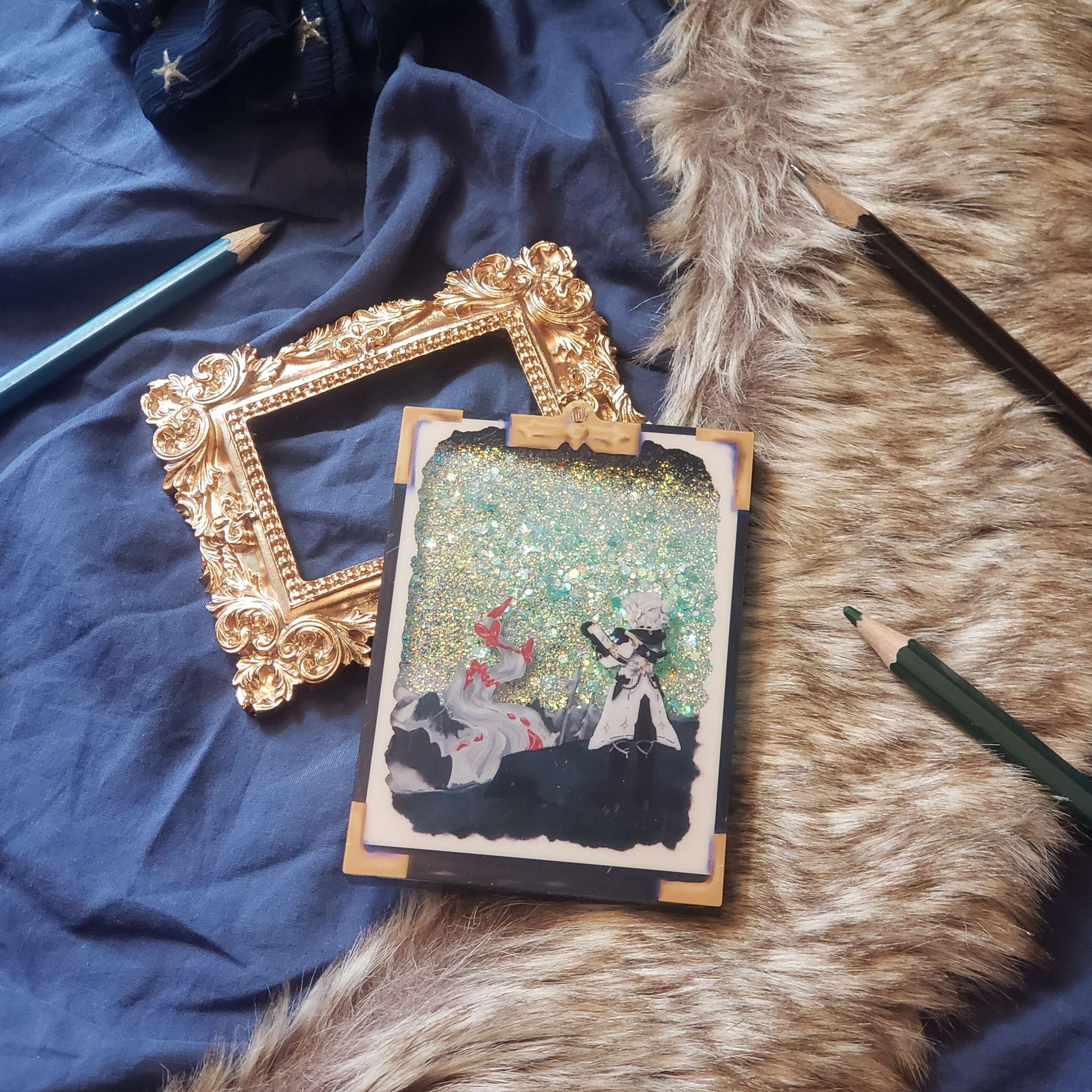 Looking out onto Dragonspine it's easy to want to sketch, after all the snow fall isn't going to last forever. This liquid glitter charm lets the snow fall over again, with a soft painterly design.