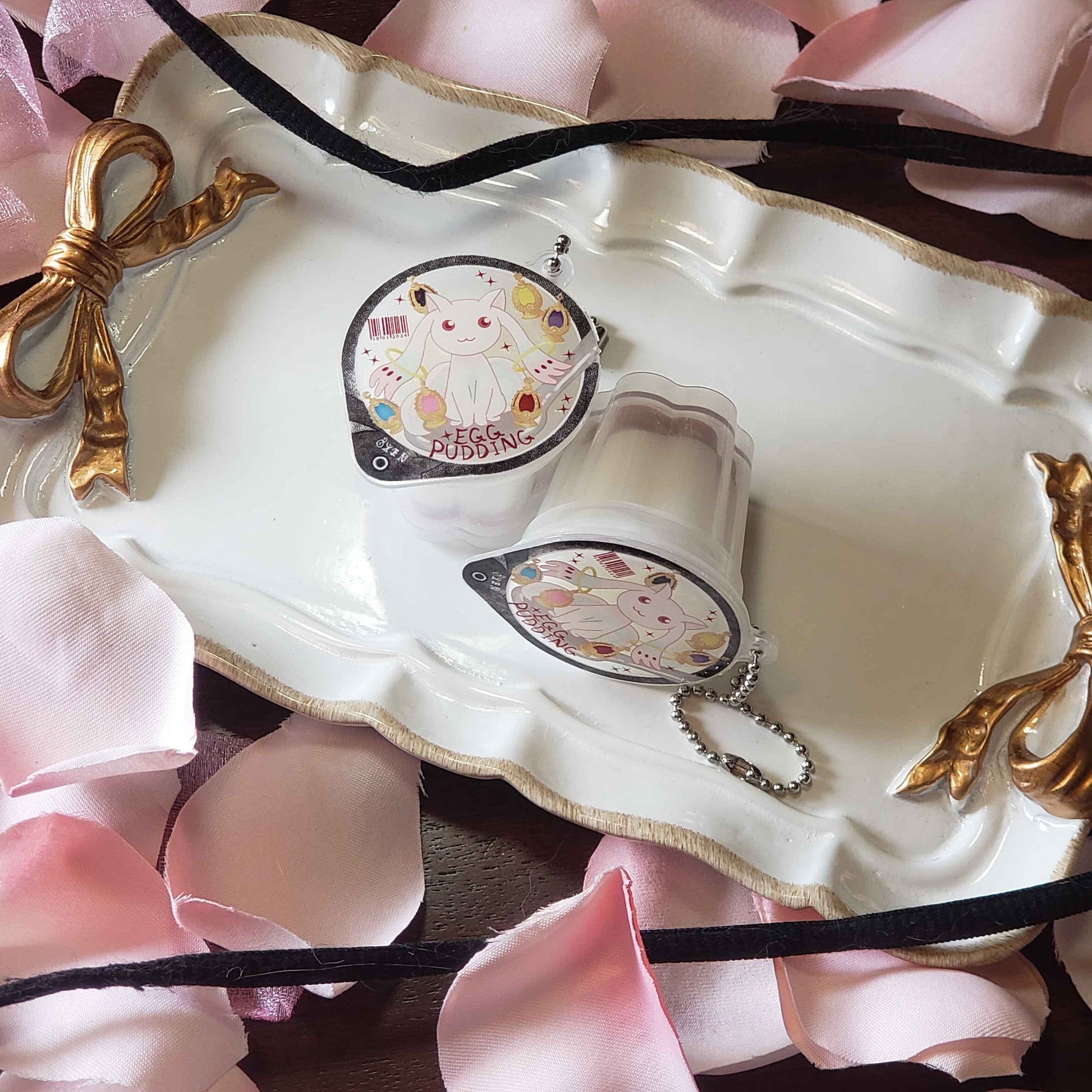 This charm has a hard plastic outer case with a removable pudding squishy-!