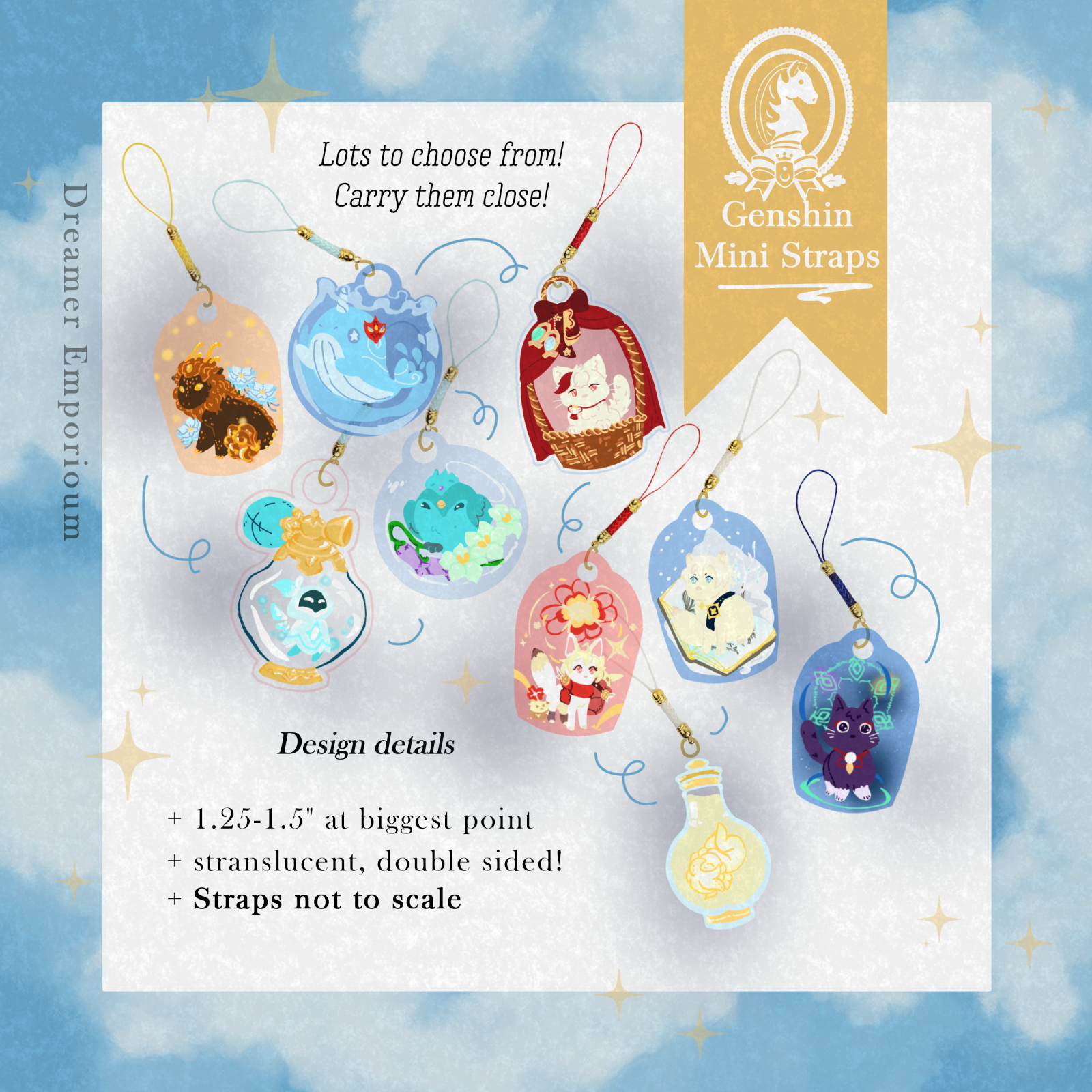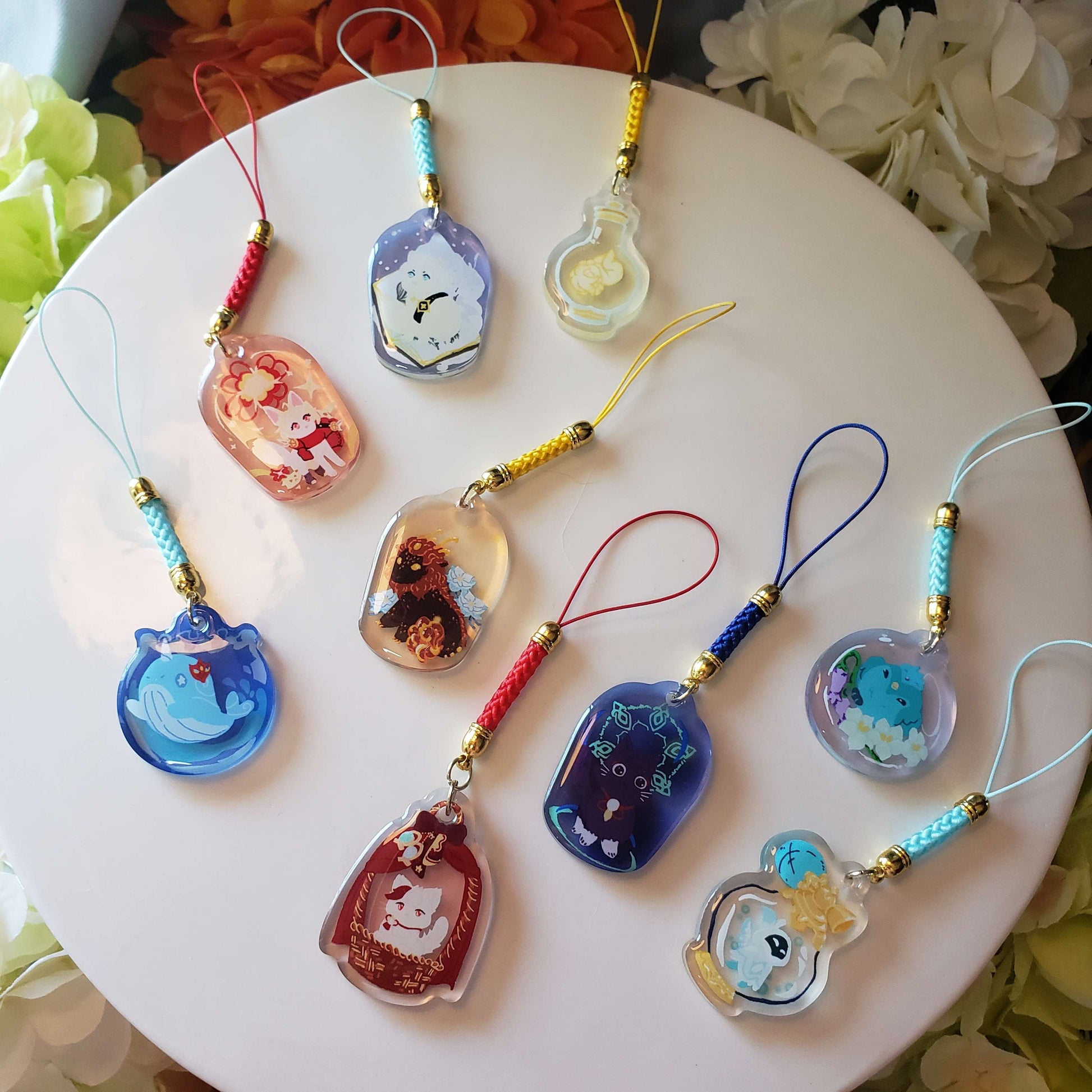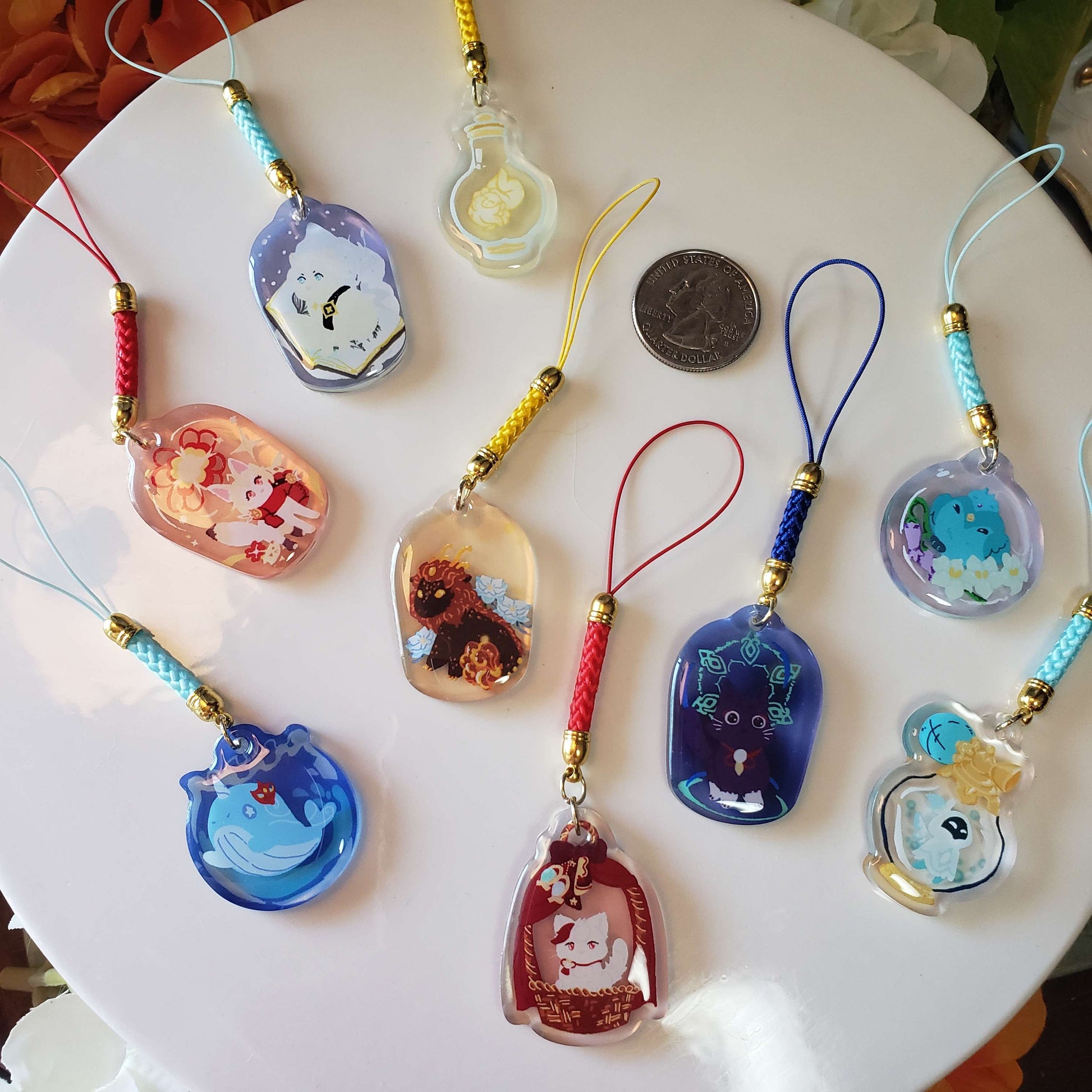 Mix and match these mini mascots to take your favorite characters with you on your great adventure, your story to be told. These mini charms have translucent details and matched phone strap style attachments making them great to take on the go!