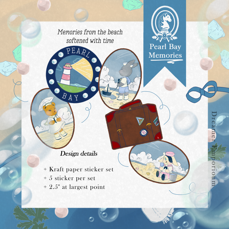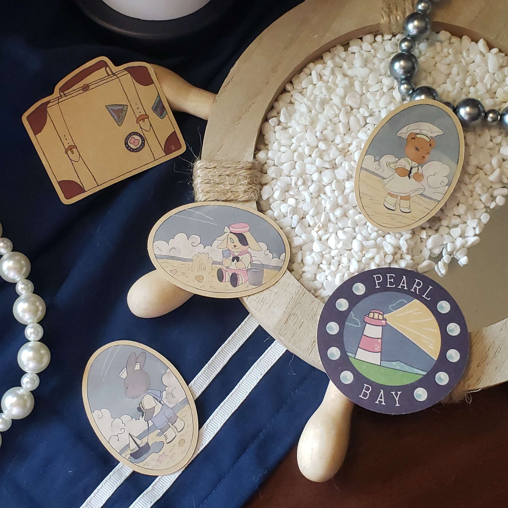 The early summer was still on this side of cold, making Pearl Bay cold in the shade and warm in the sun. Strawberry Rhubarb and friends commemorate their trip with this Kraft paper sticker set!