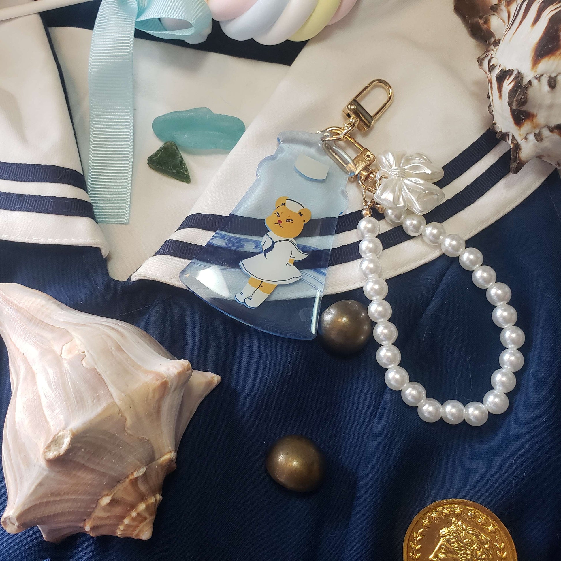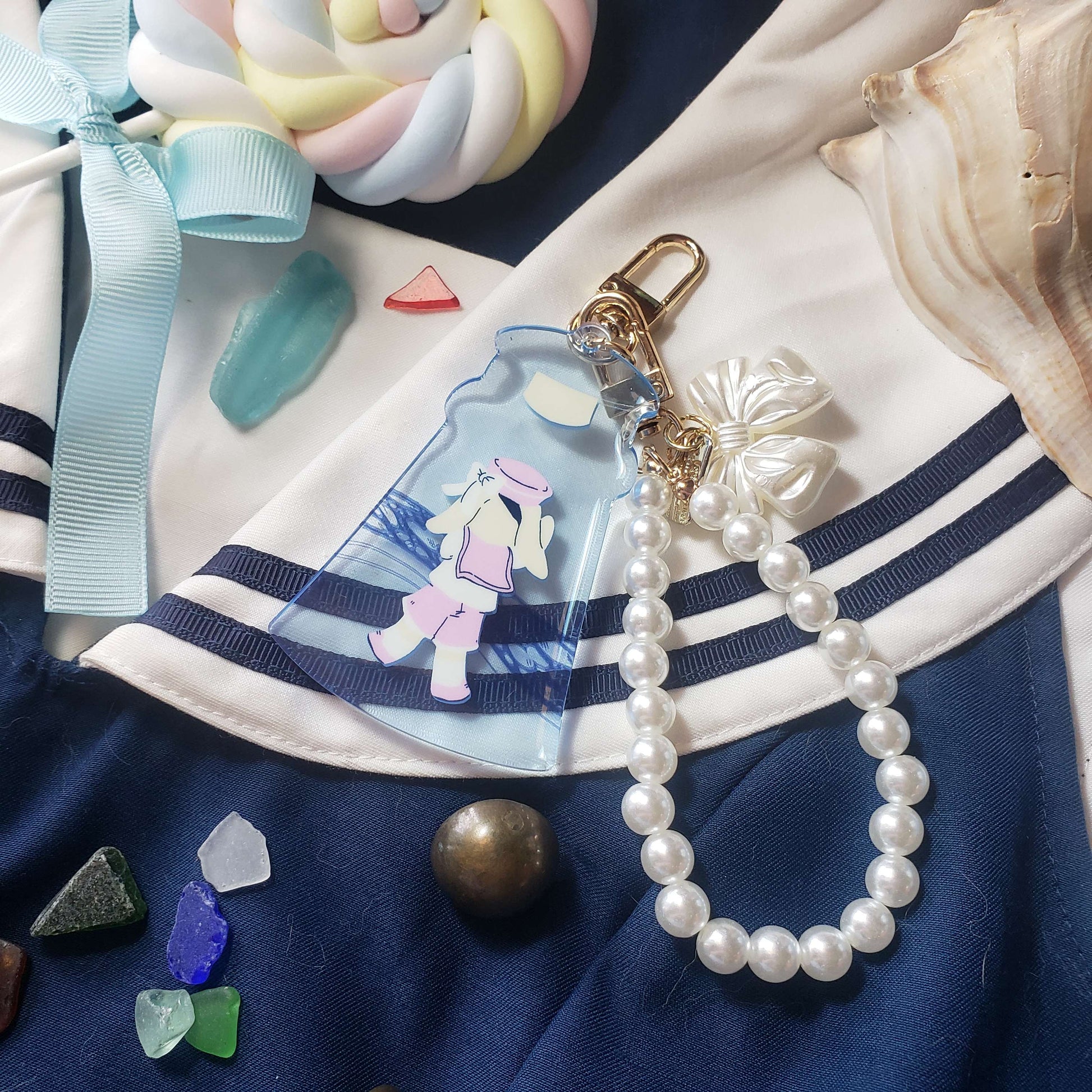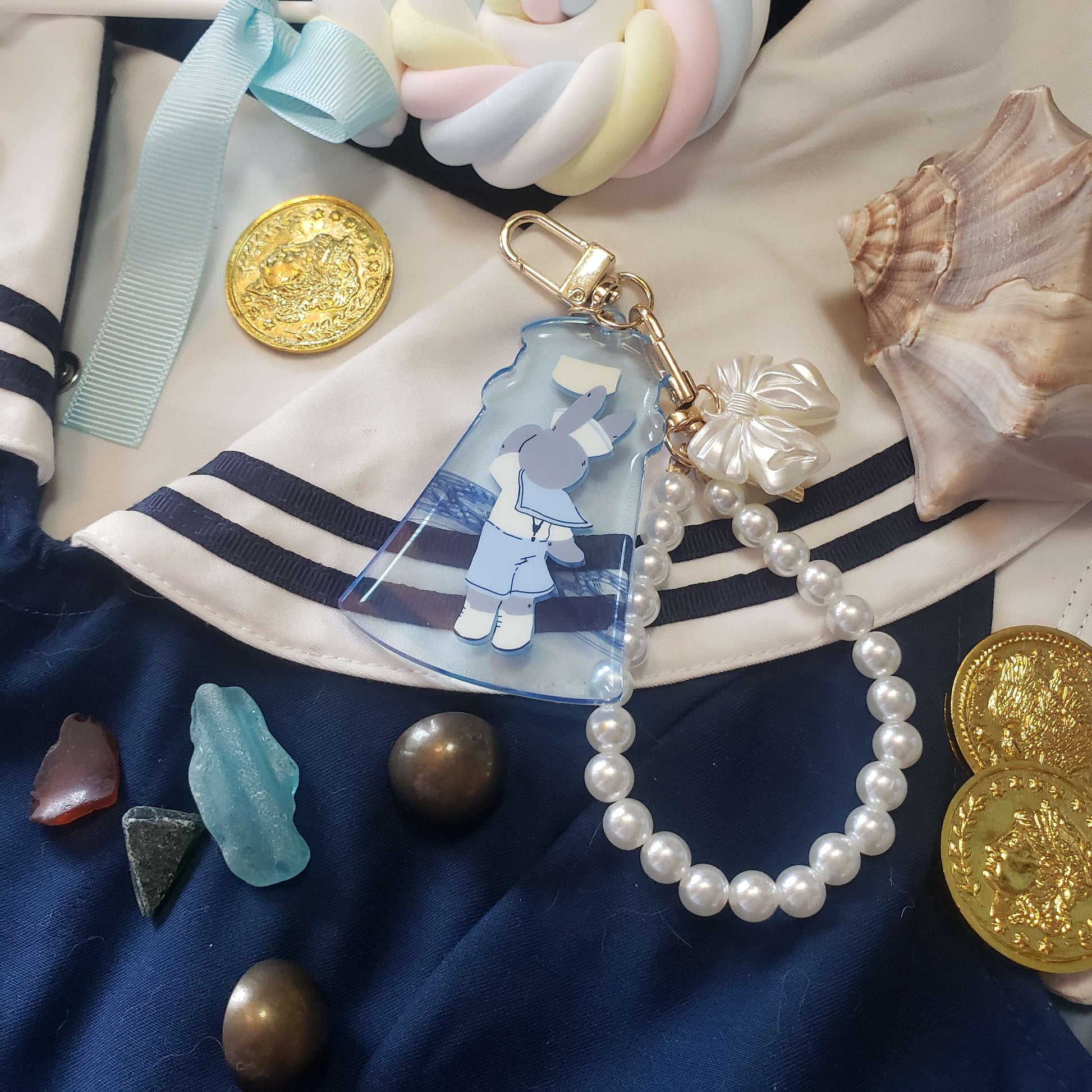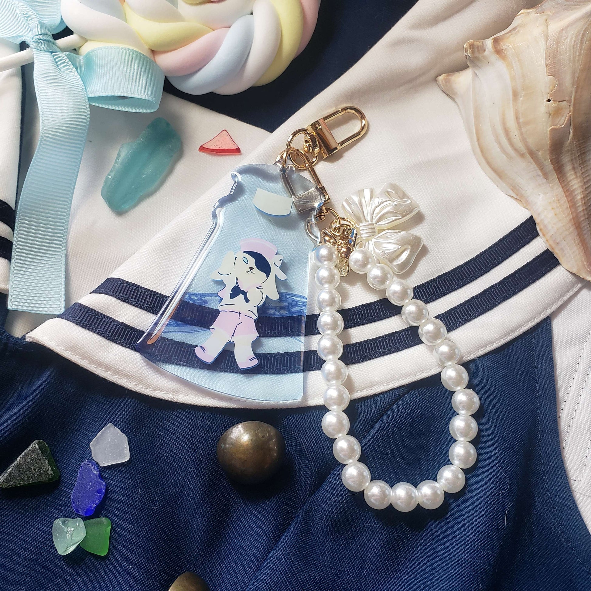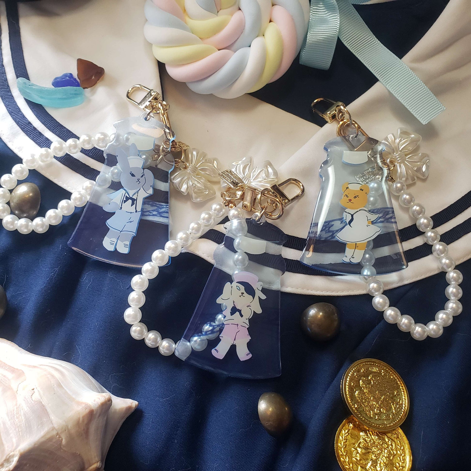 Gazing into the far distance, for a glimpse of boats out at sea- These double sized charms feature a translucent background cut out as a light house and Strawberry Rhubarb and friends searching that far horizon, and a bonus string of pearls charm accessory!