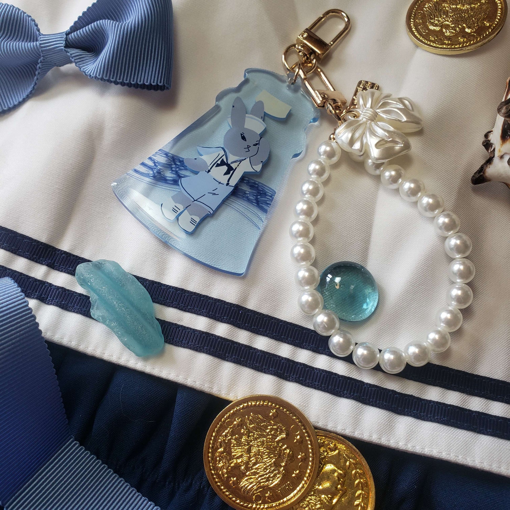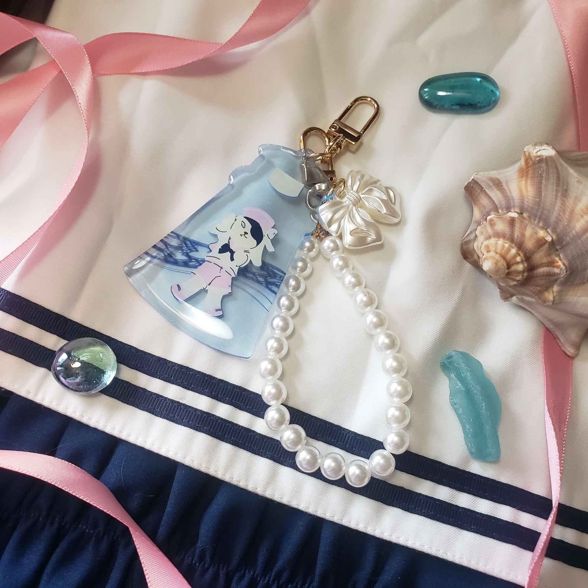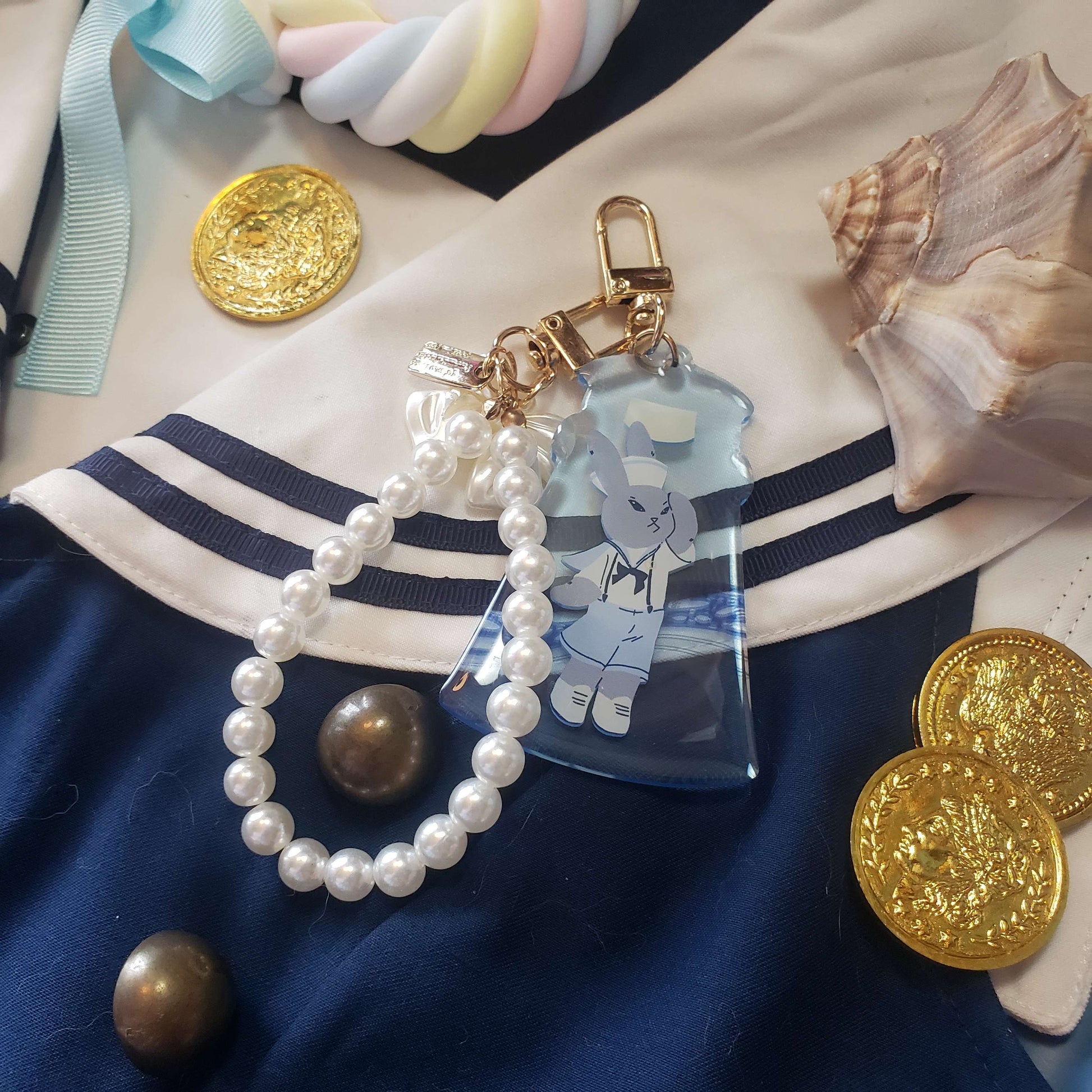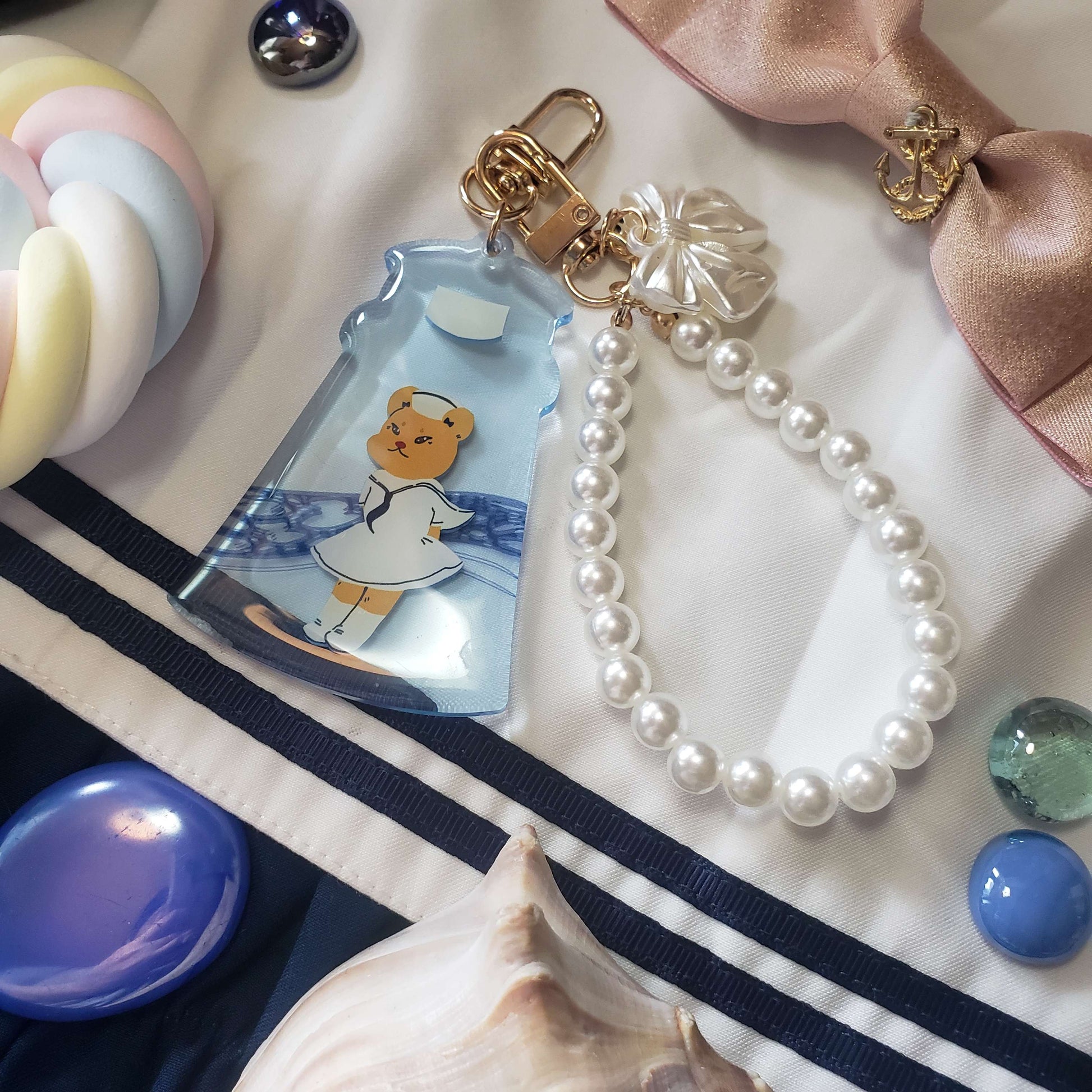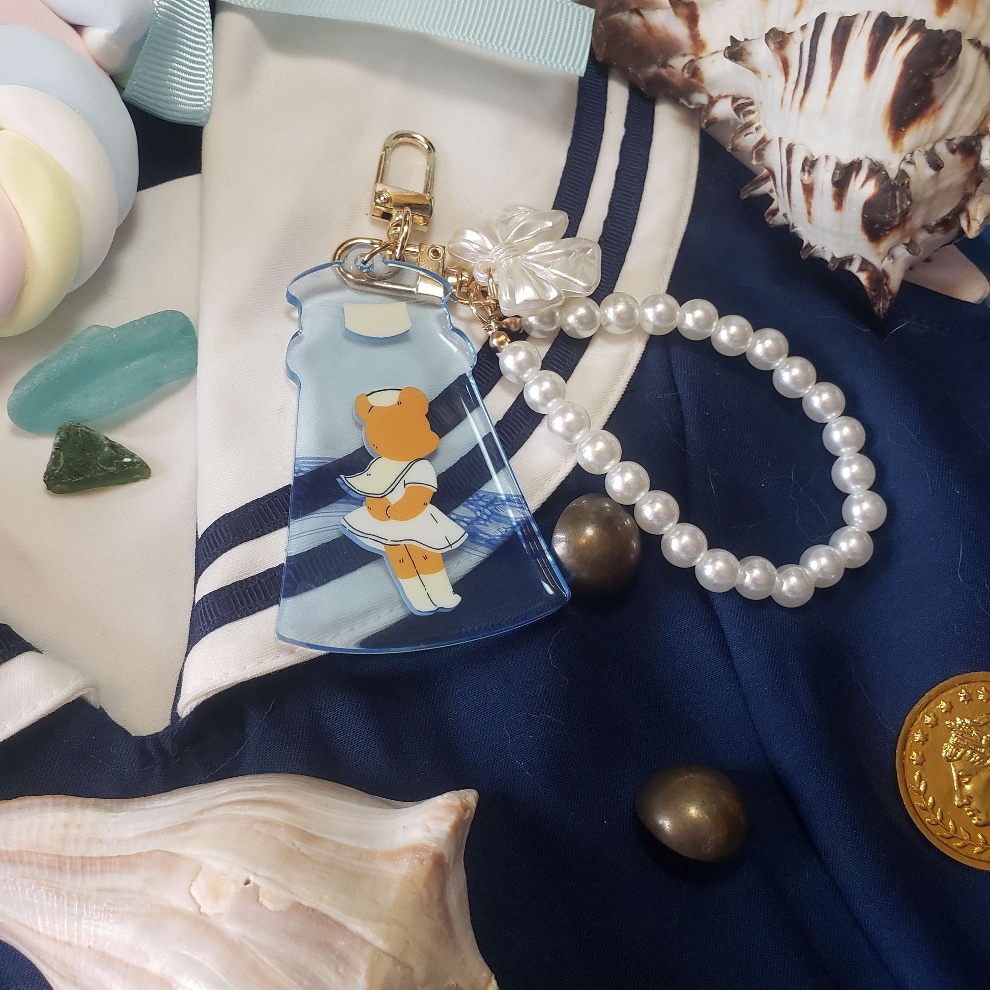 Gazing into the far distance, for a glimpse of boats out at sea- These double sized charms feature a translucent background cut out as a light house and Strawberry Rhubarb and friends searching that far horizon, and a bonus string of pearls charm accessory!