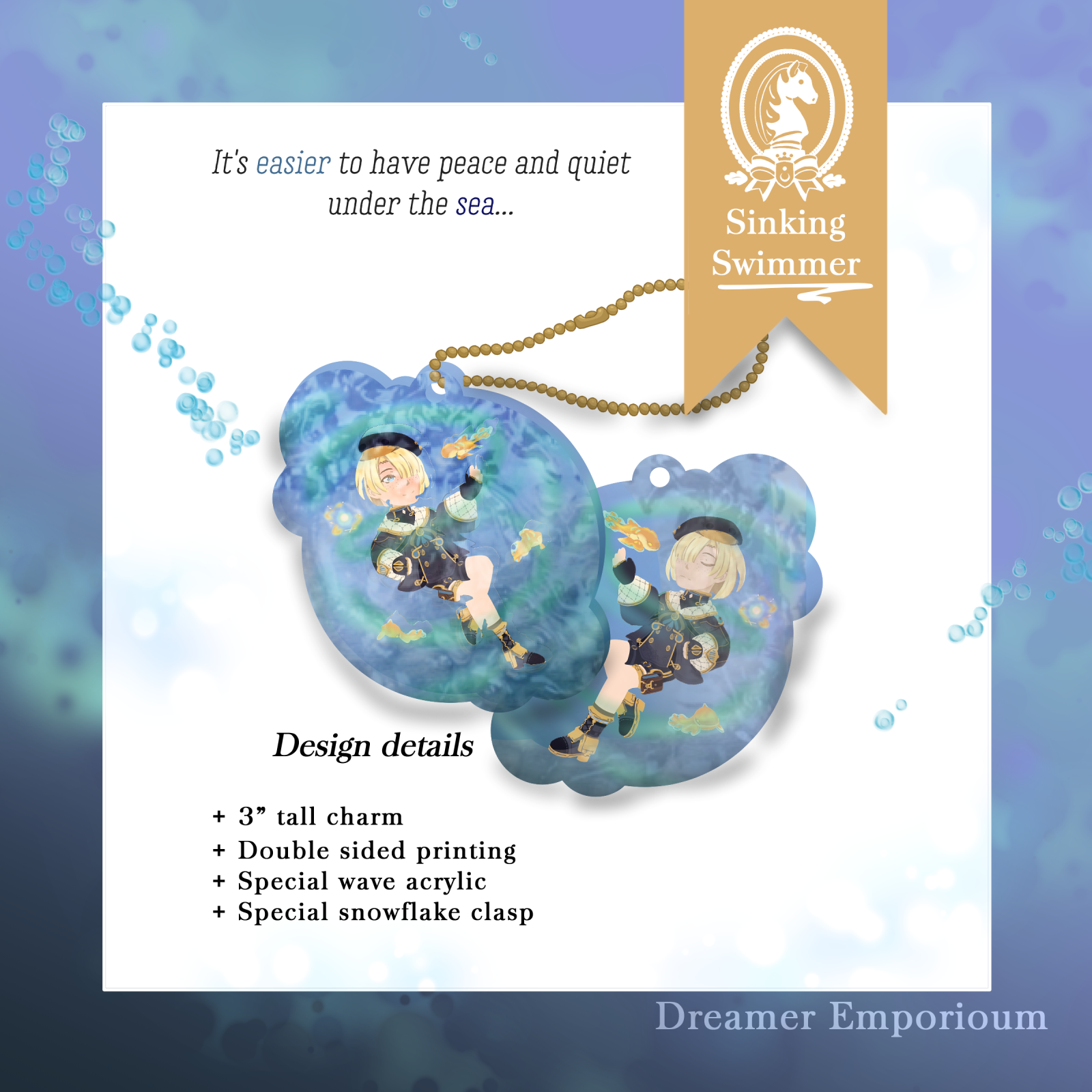 It's easier to go with the flow when diving... This acrylic charm is printed on a special textured acrylic making it seem like your seeing the art through water.