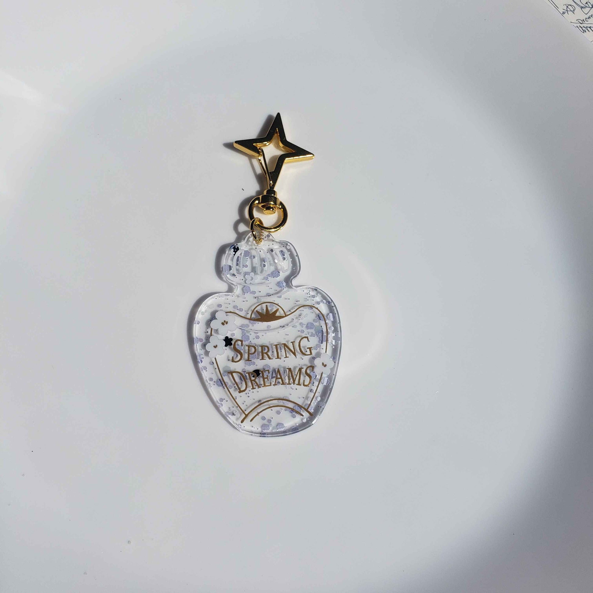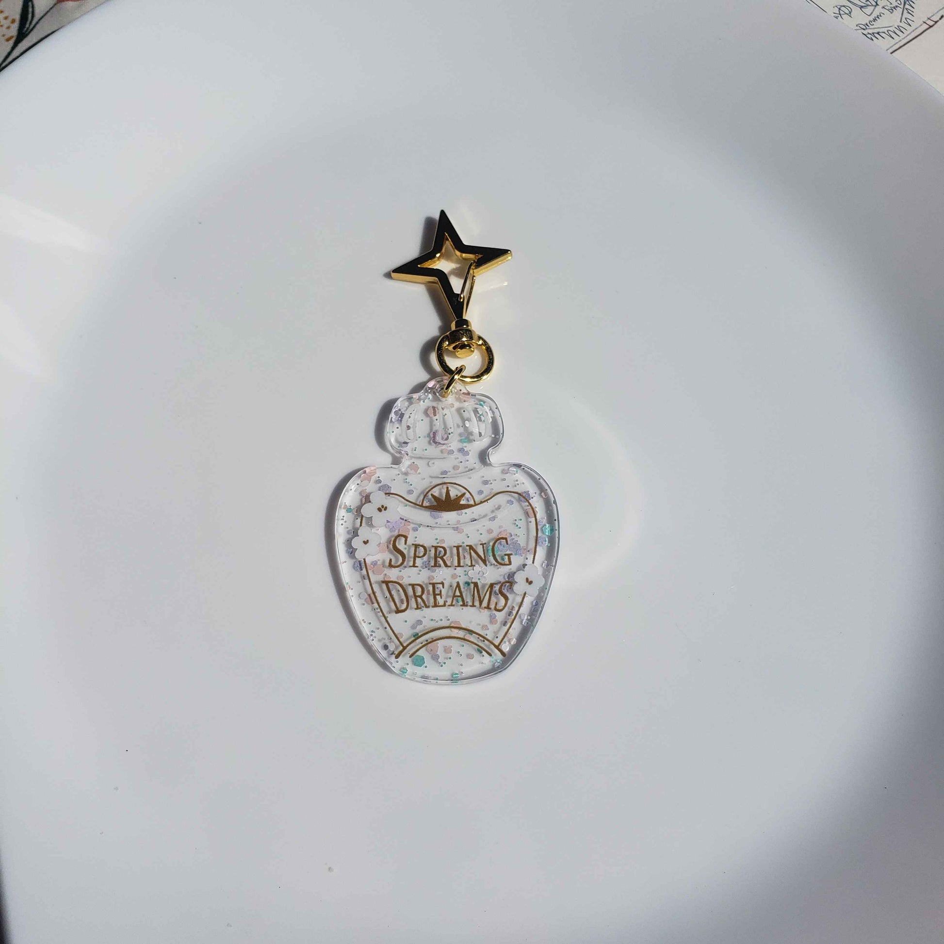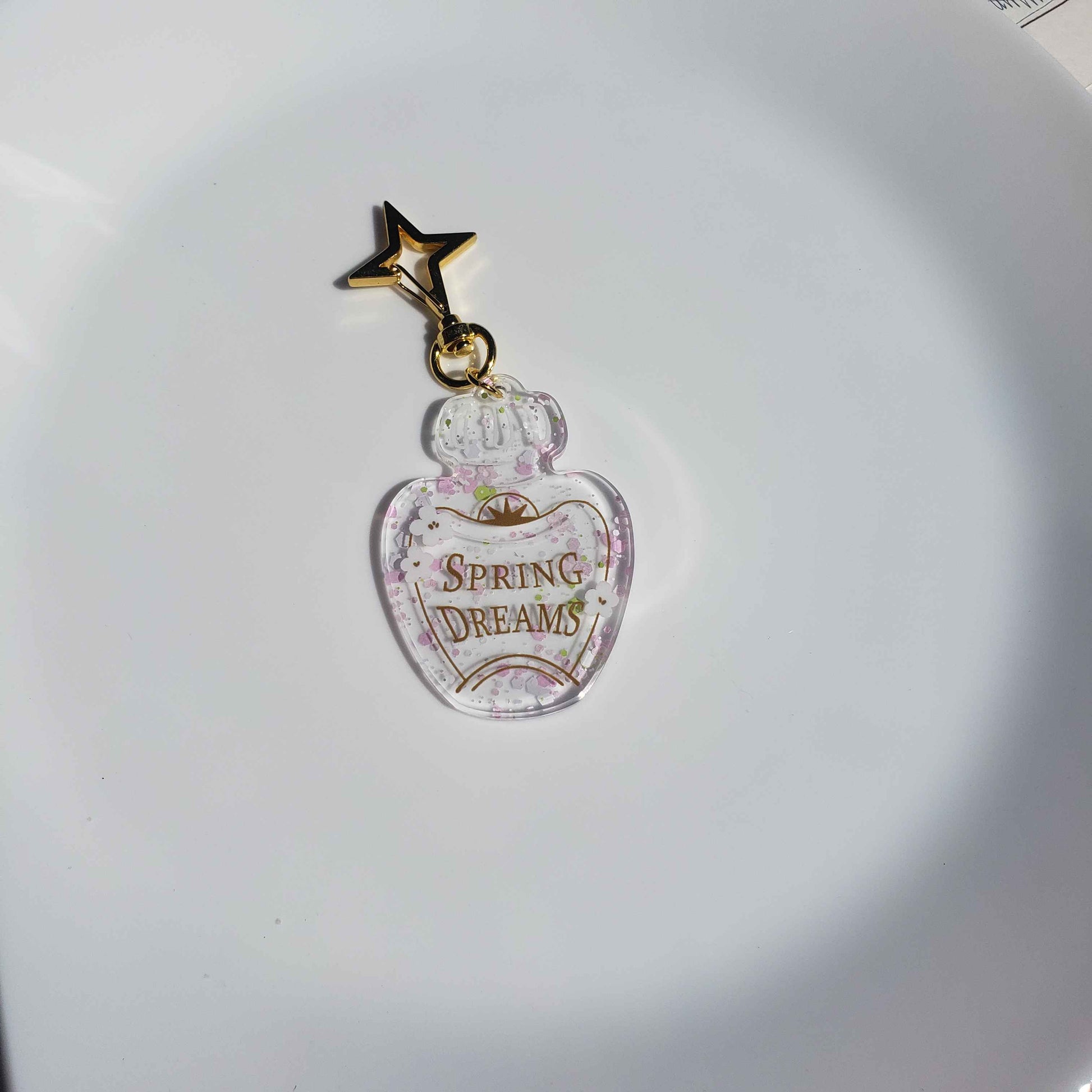 A breath of fresh air, and something slightly floral? Spring Dream perfume bottle charms has six versions to choose from- and with the clear glitter board acrylics they match any outfit~