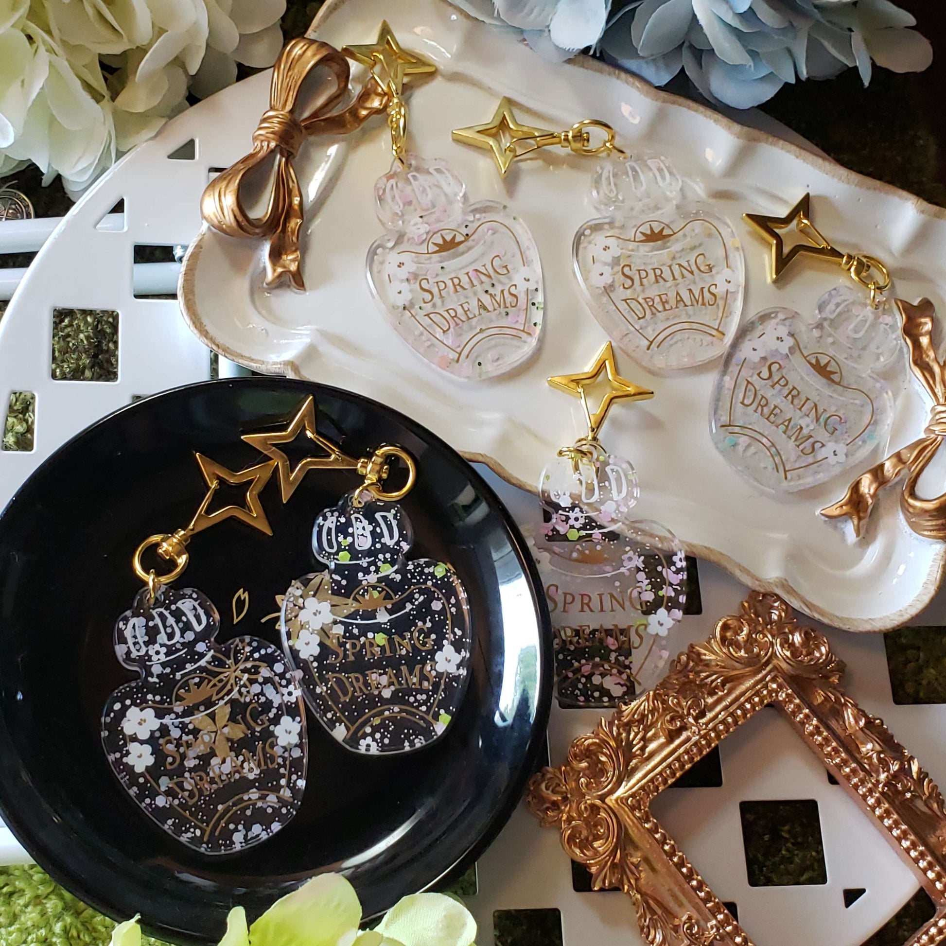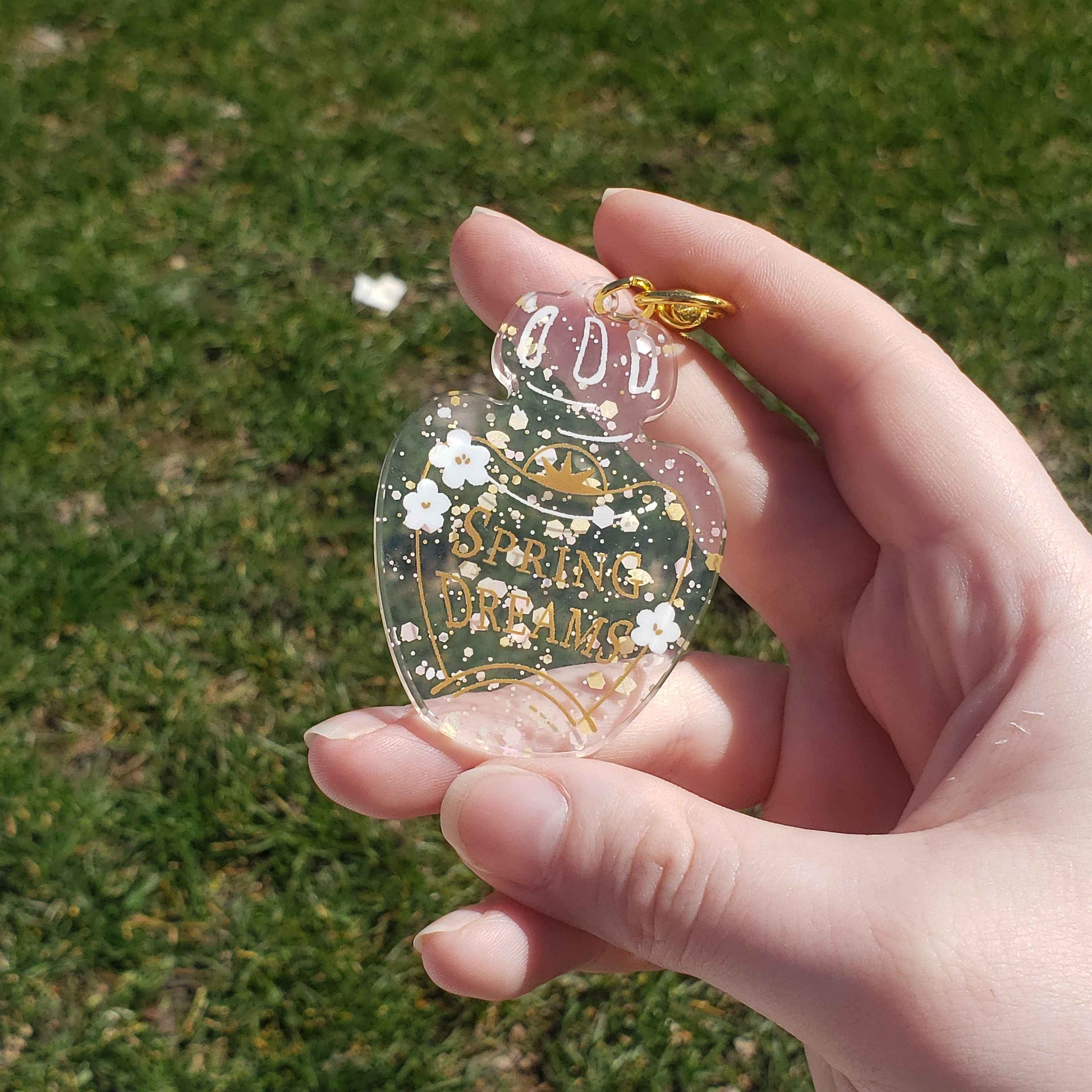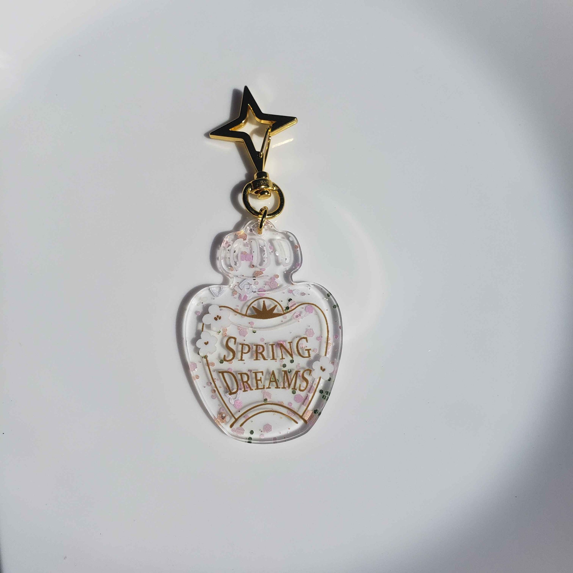 A breath of fresh air, and something slightly floral? Spring Dream perfume bottle charms has six versions to choose from- and with the clear glitter board acrylics they match any outfit~