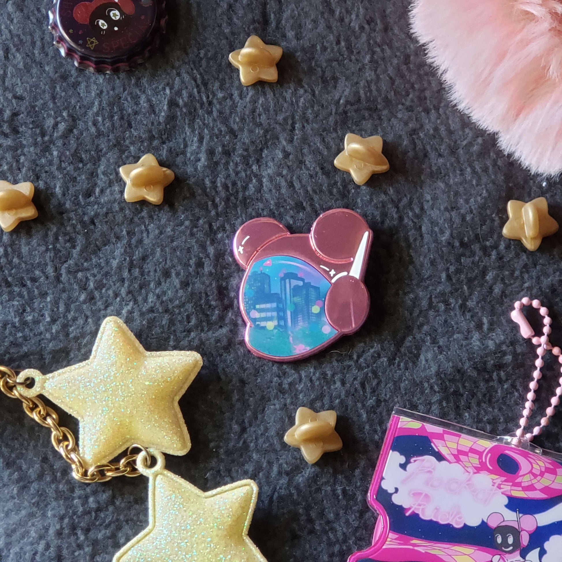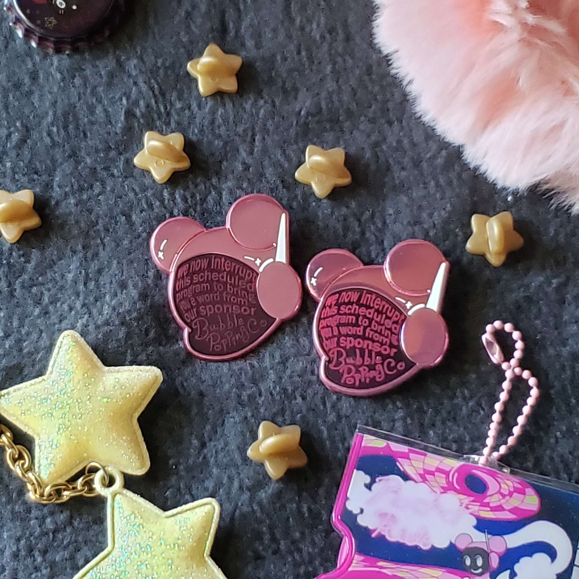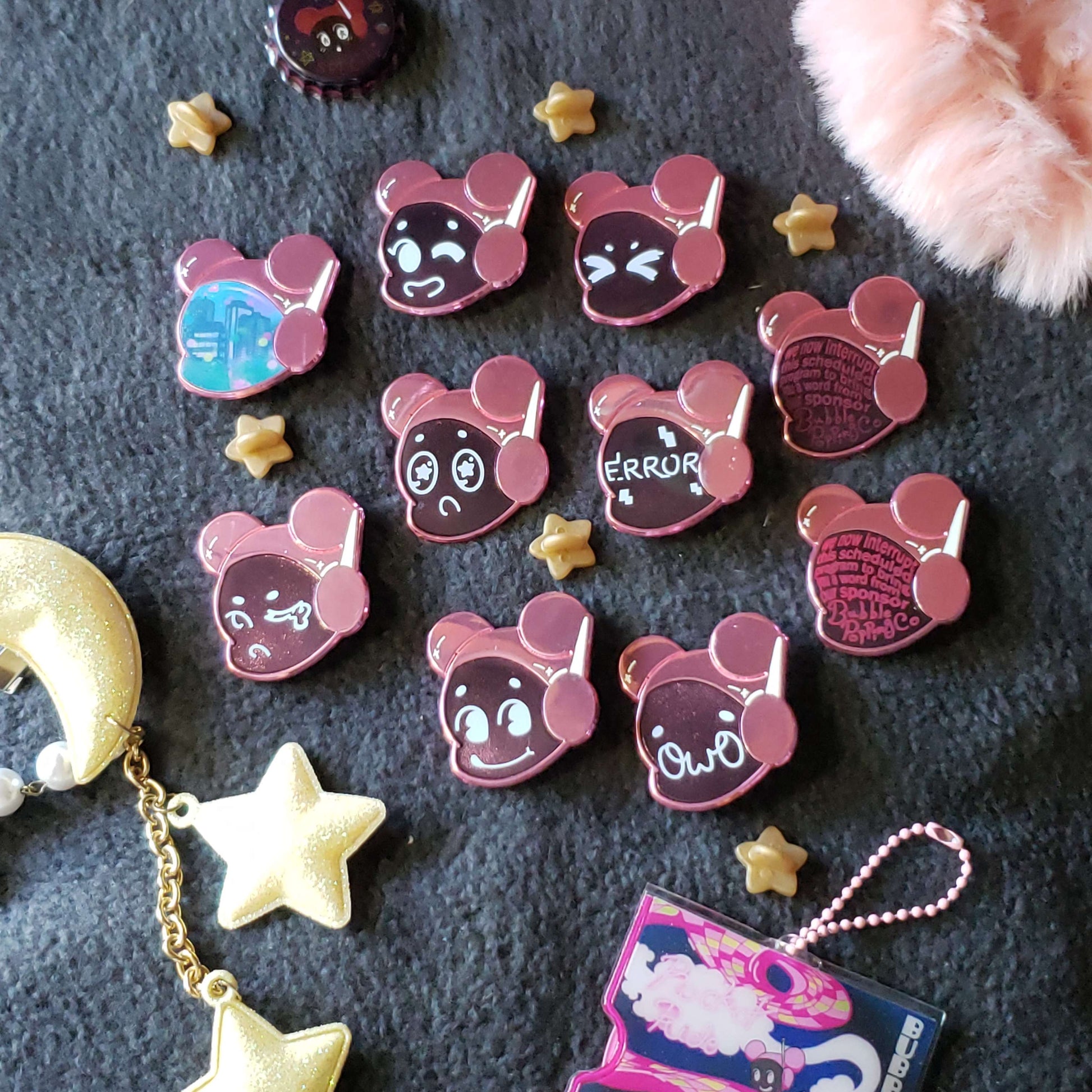 Everyone's favorite intergalactic sweet heart is back! Dreamer Emporium's own Bubble Pop takes the stage again with these new pink chrome pins! With hard enamel fills and a variety of display screens to chose from, there's sure to be a face that matches your mood!