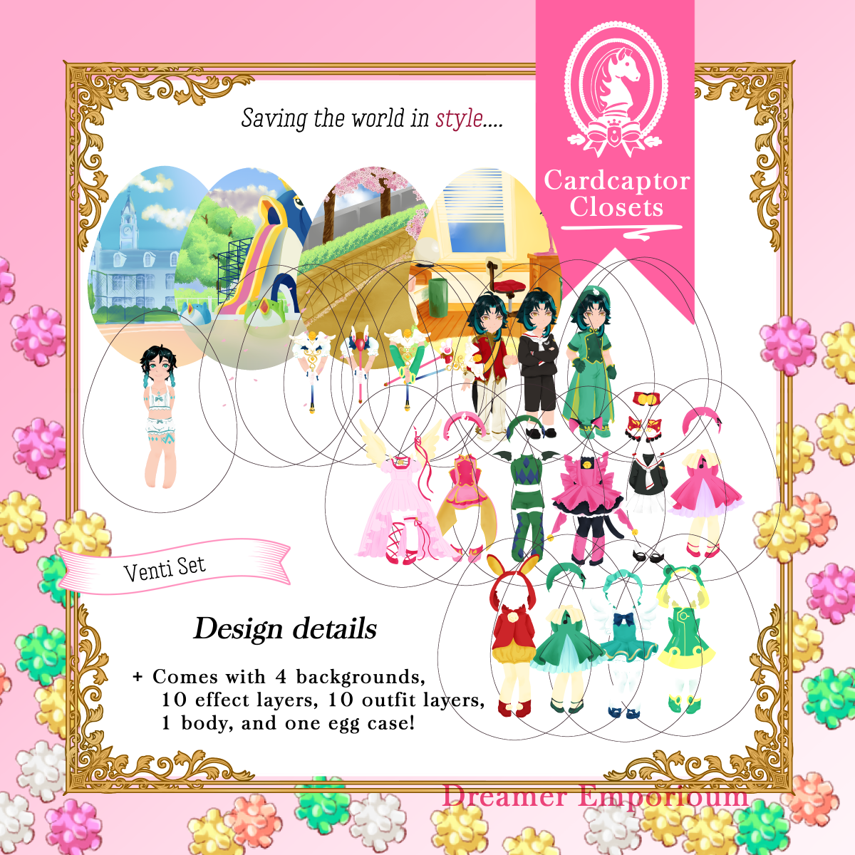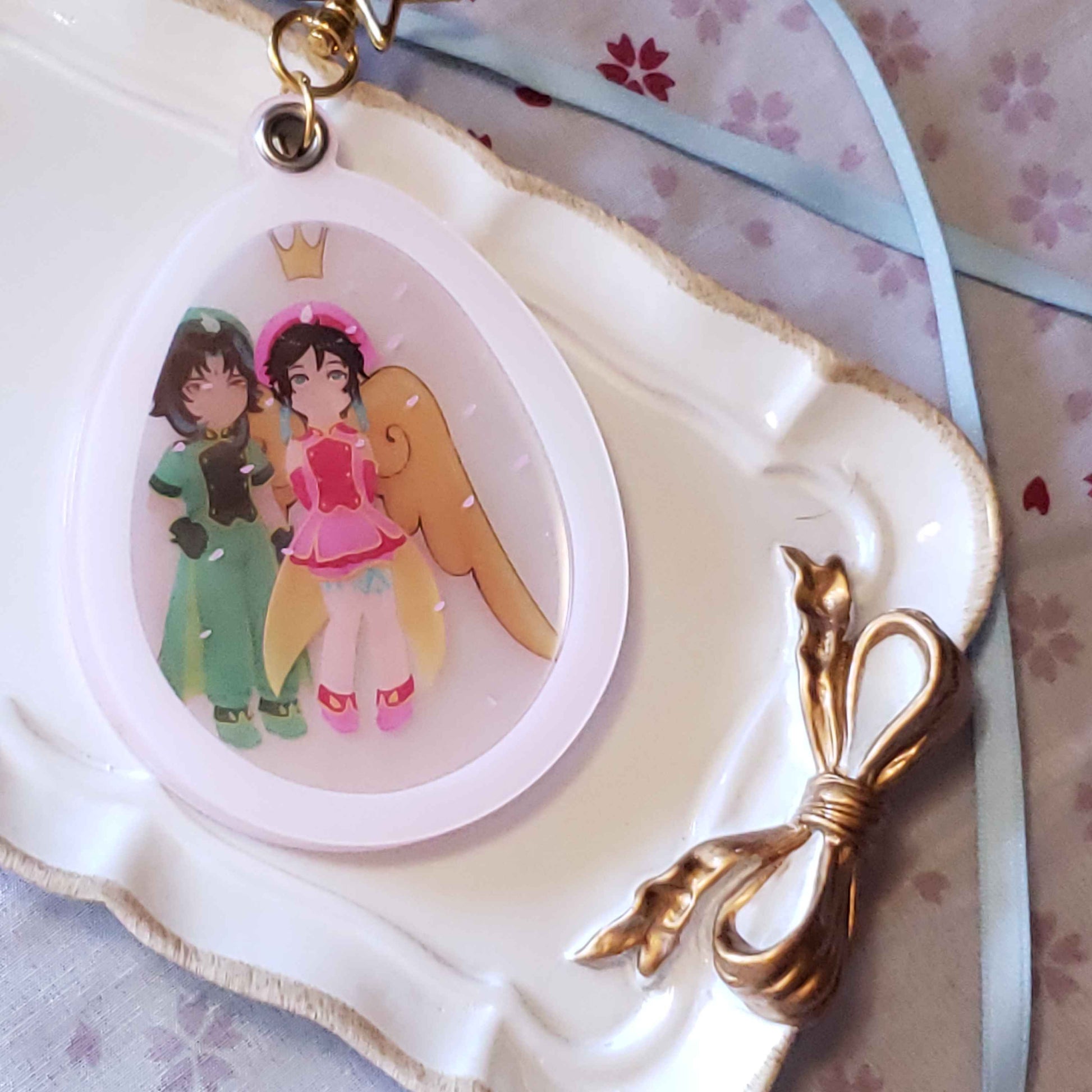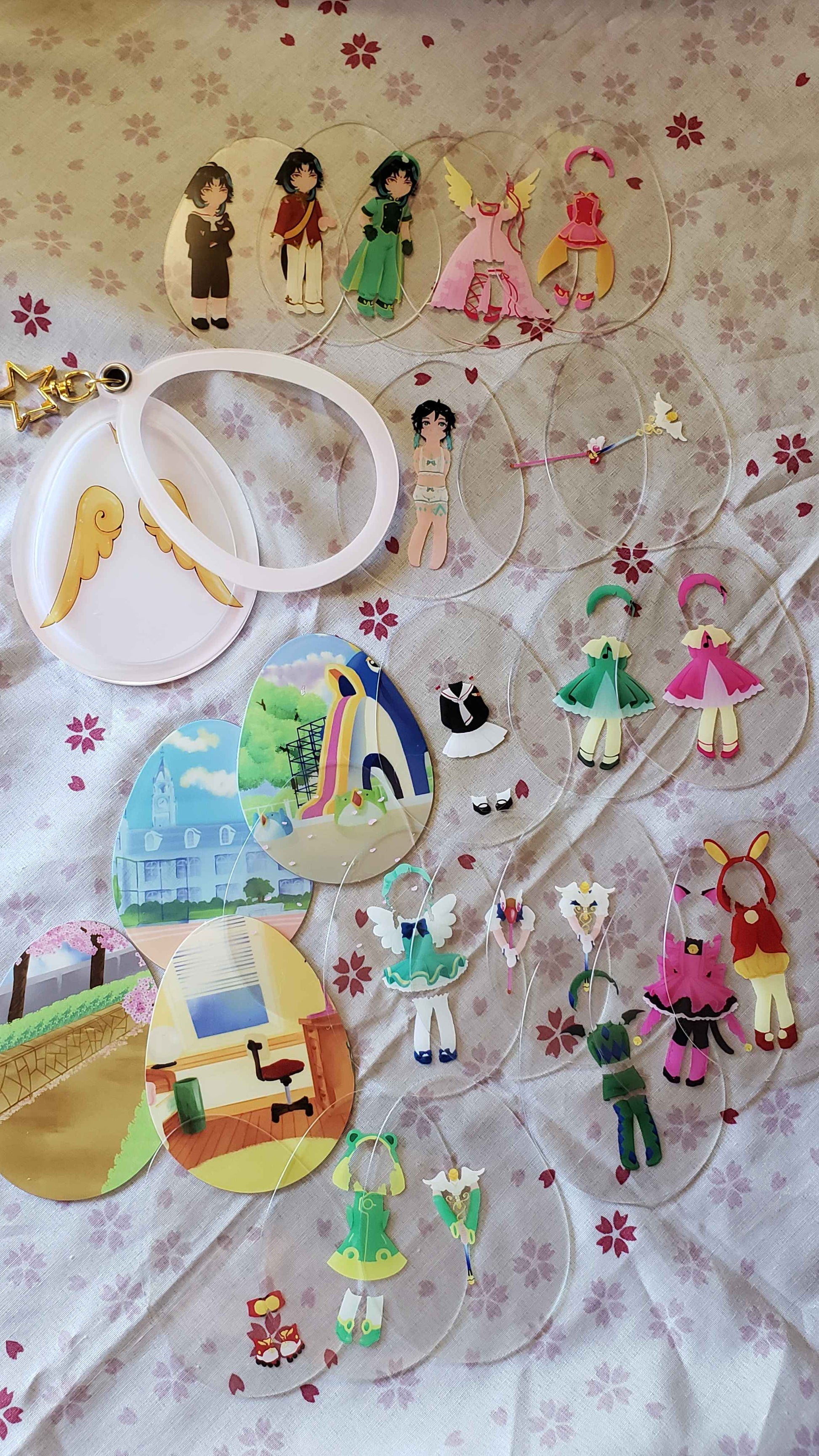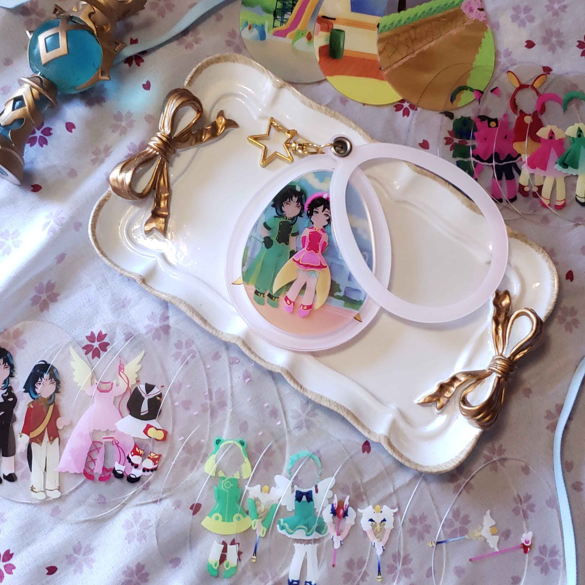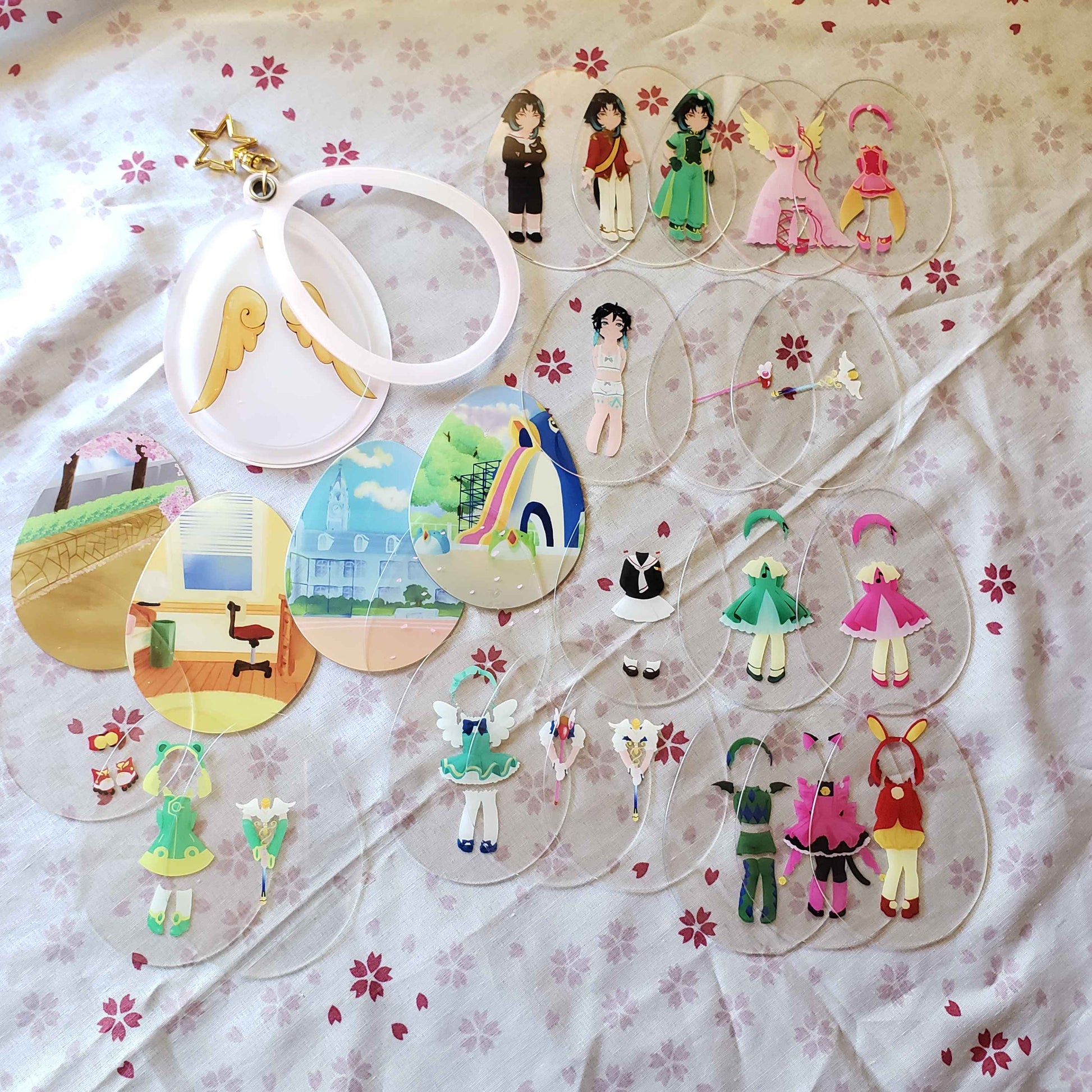 Catch you, Catch me, Catch this! A cross over rarely dreamed of, but Cardcaptor Venti is here! This acrylic charm is an improvement on paper dolls, with an outer 'egg' shaped case, and thin plastic layers that let you decide the background, and which outfits and effects Venti is dressed up with!
