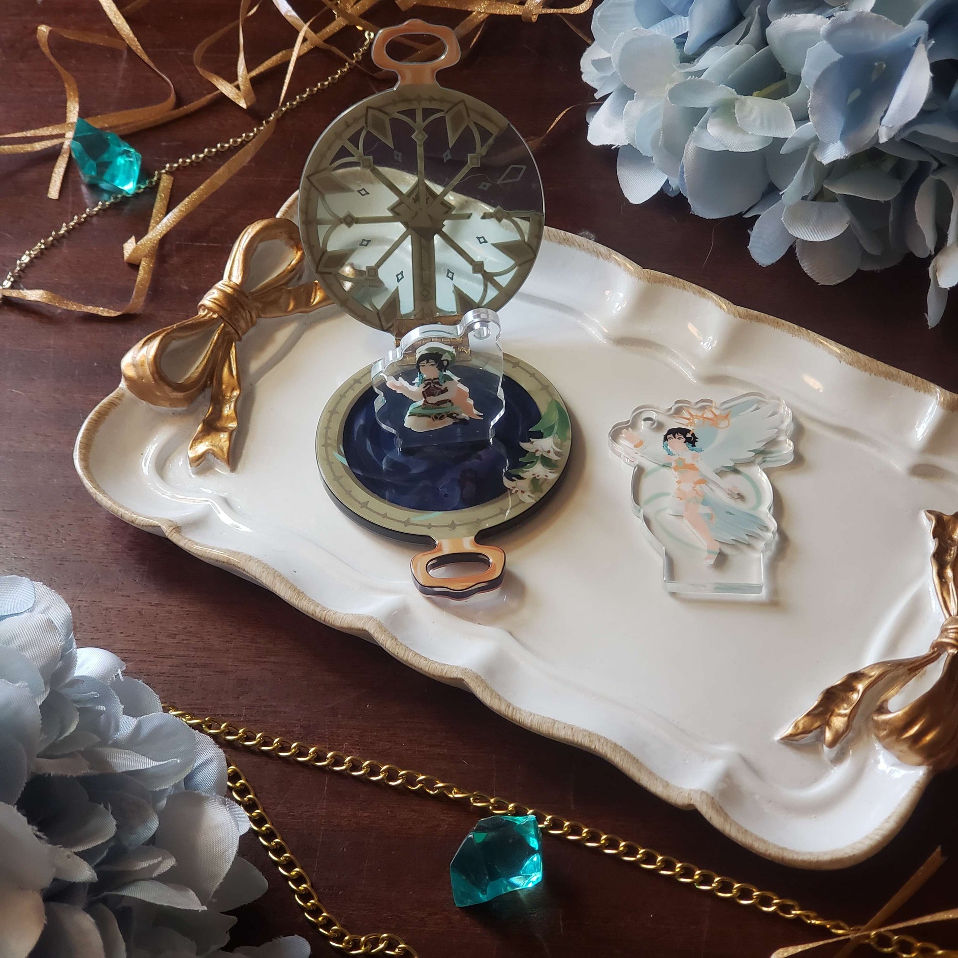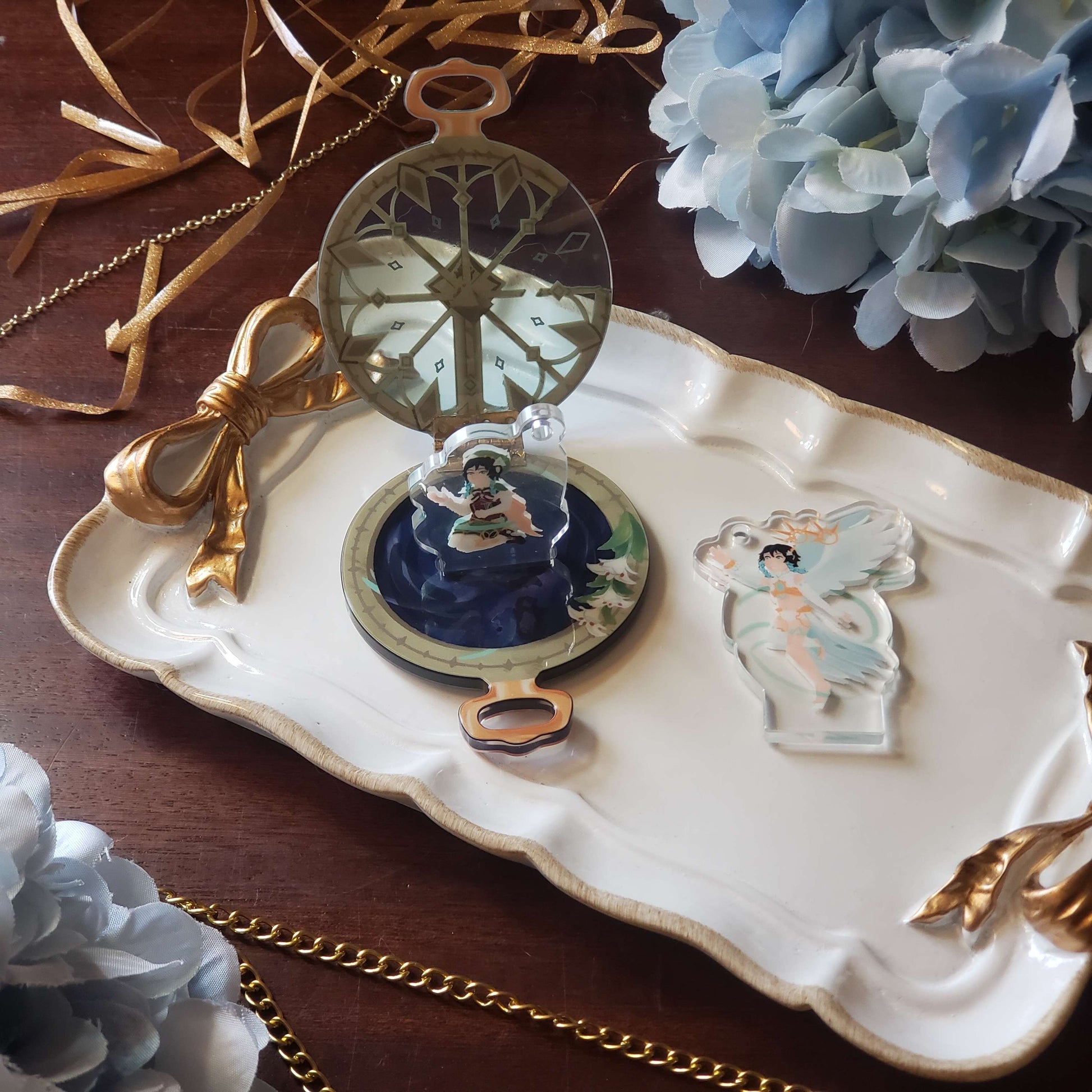 - Gold holo foil and 2 layer print adds depth to each piece-! Comes with a gold bean chain so you can carry both the watch, and the standee charms with you!